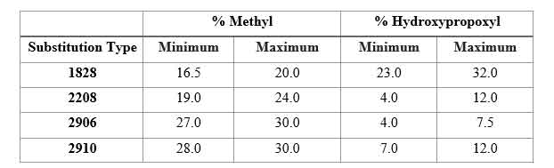 Standards on the Contents of Substituents of HPMC